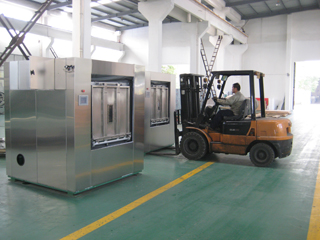 洗滌物由位于非潔凈區一側的機門裝入,洗滌完畢后從位于潔凈區一側的機門取出。